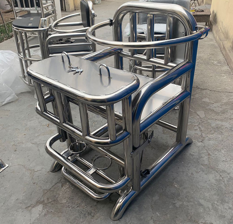 首先是方型的審訊椅,這款方型的審訊椅采用的是不銹鋼材質(zhì)的,優(yōu)點是不容易生銹,而且很牢固。