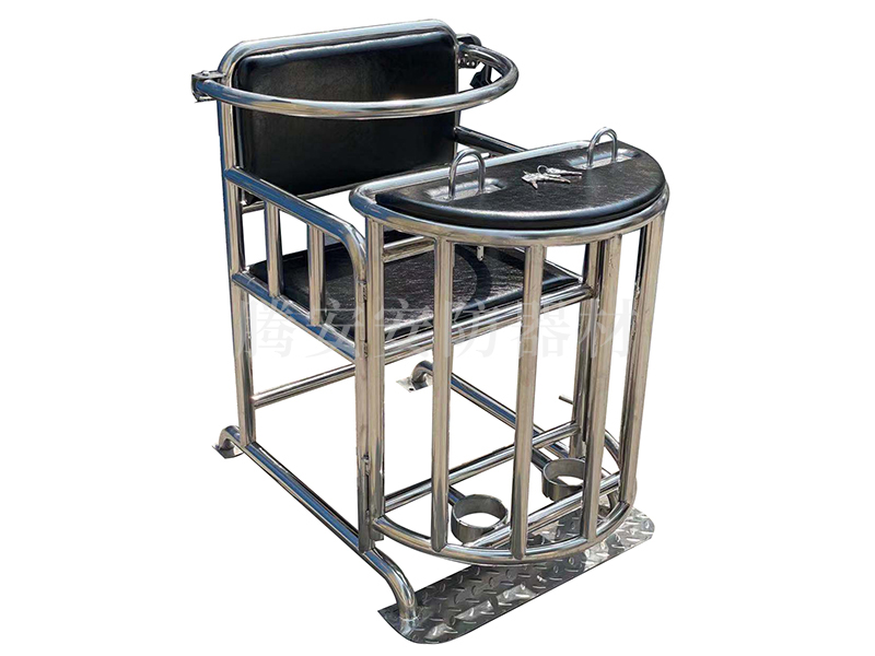 品名:不銹鋼審訊椅,型號(hào):TA一A12型。產(chǎn)品介紹:采用全自動(dòng)彎管機(jī)整管彎制,管壁全部為貼標(biāo)2.0,無(wú)焊縫,不使用彎頭,做工精細(xì),配有通用鑰匙型鎖具,配有胸部可調(diào)節(jié)大小型約束杠,防止上身前傾.,椅子整體可固定于地面。