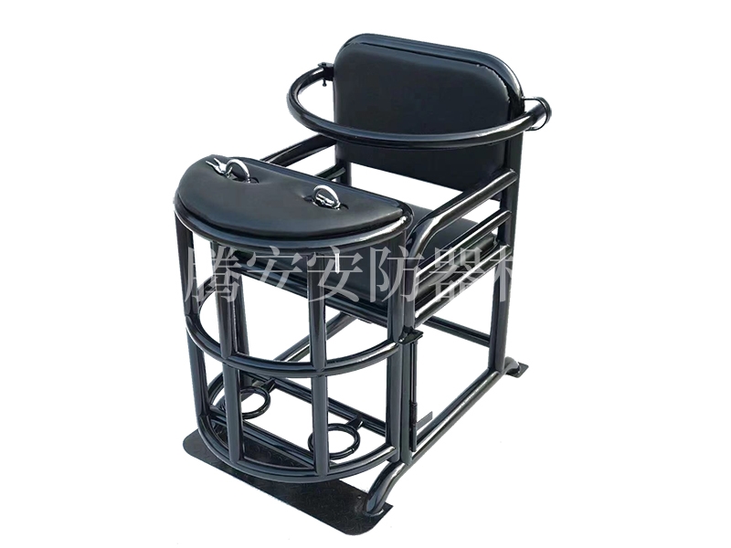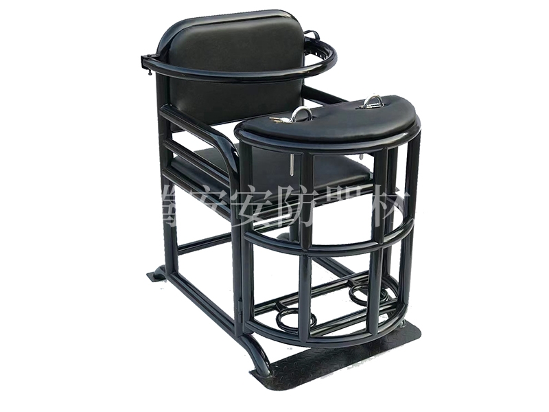 本產(chǎn)品選用均為優(yōu)質(zhì)鋼材彎制焊接而成,管壁為貼標(biāo)2.0厚,靠背、座面、桌面配有高檔西皮軟包處理,整體重量40公斤。椅子左側(cè)有開關(guān),可同時(shí)打開前桌門和腳銬,操作簡單方便,桌面裝有U型鎖或手銬,胸部配有可以調(diào)節(jié)功能裝置約束杠,整體可以固定在地面上。